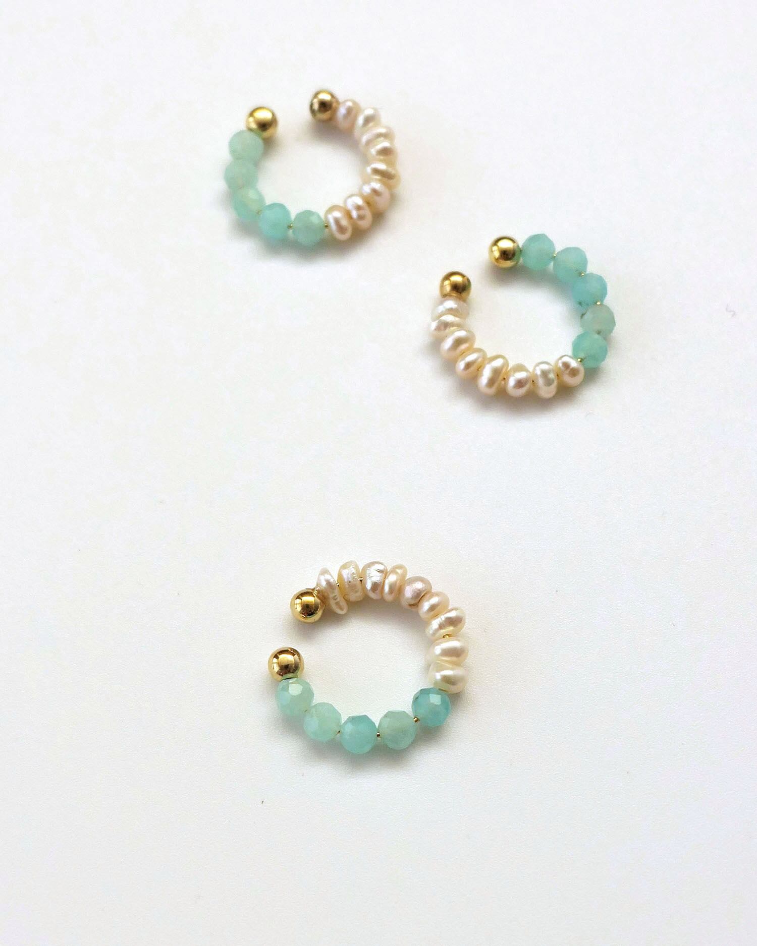 EAR CUFF | ソフトイヤーカフ パール&アマゾナイト P0140