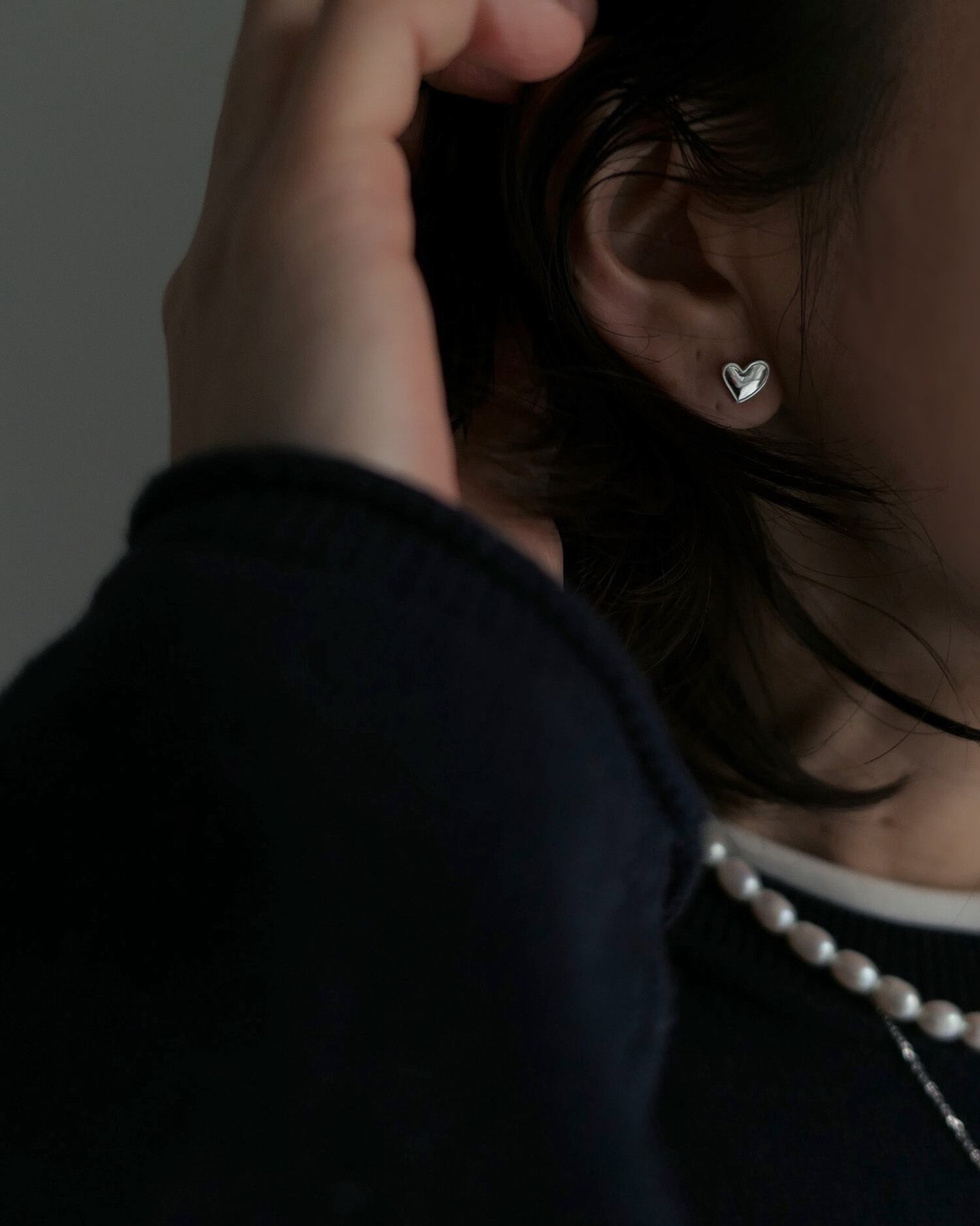 均一ではないフォルムが、シンプルな装いにさりげないニュアンスを添えます。