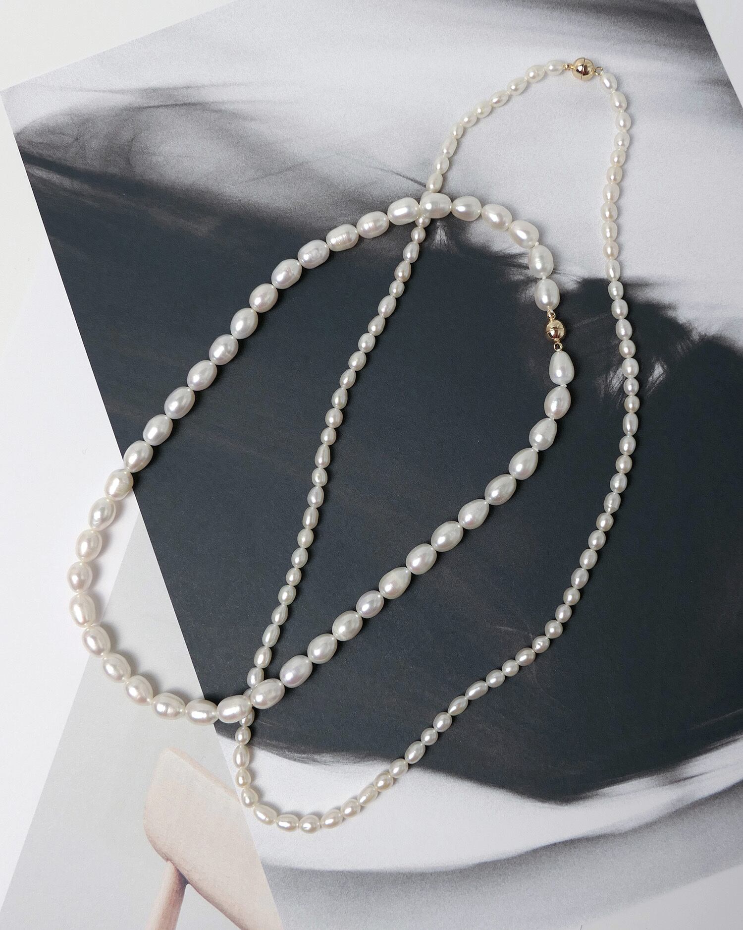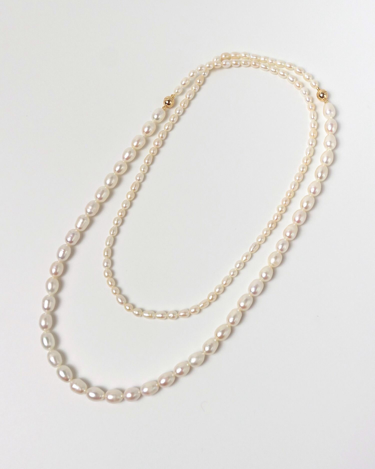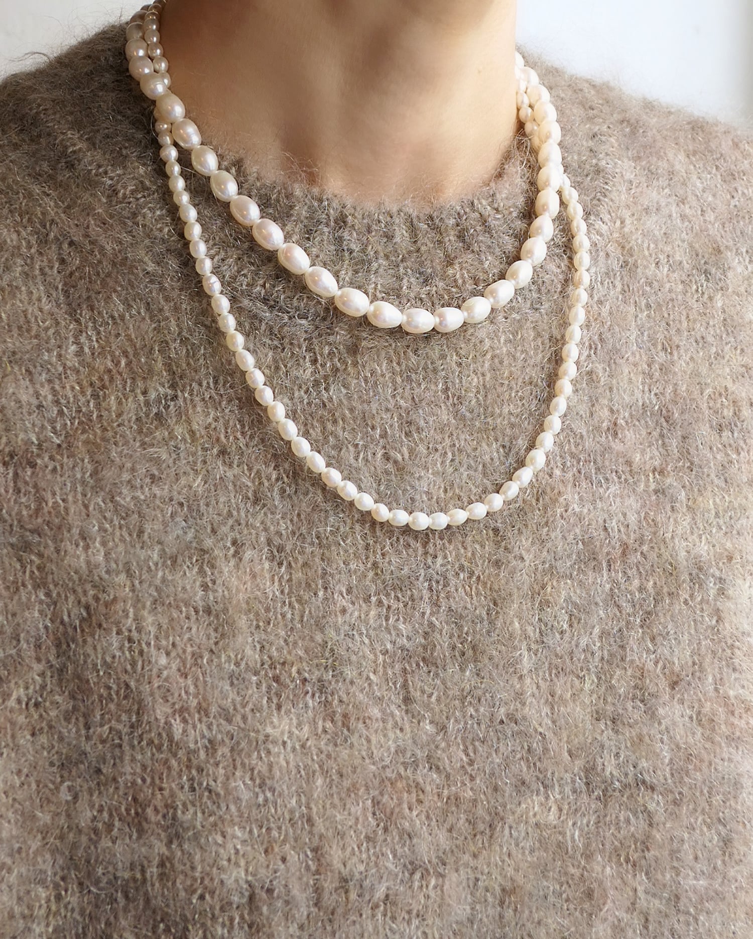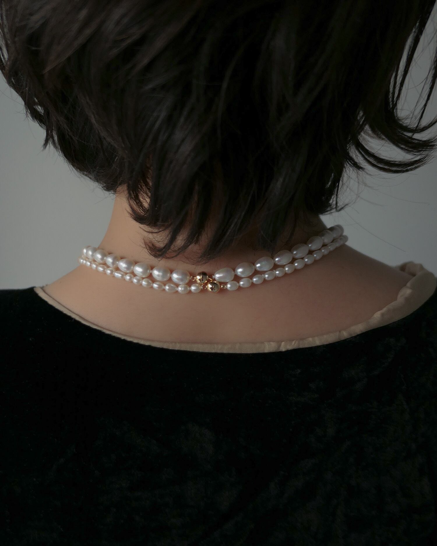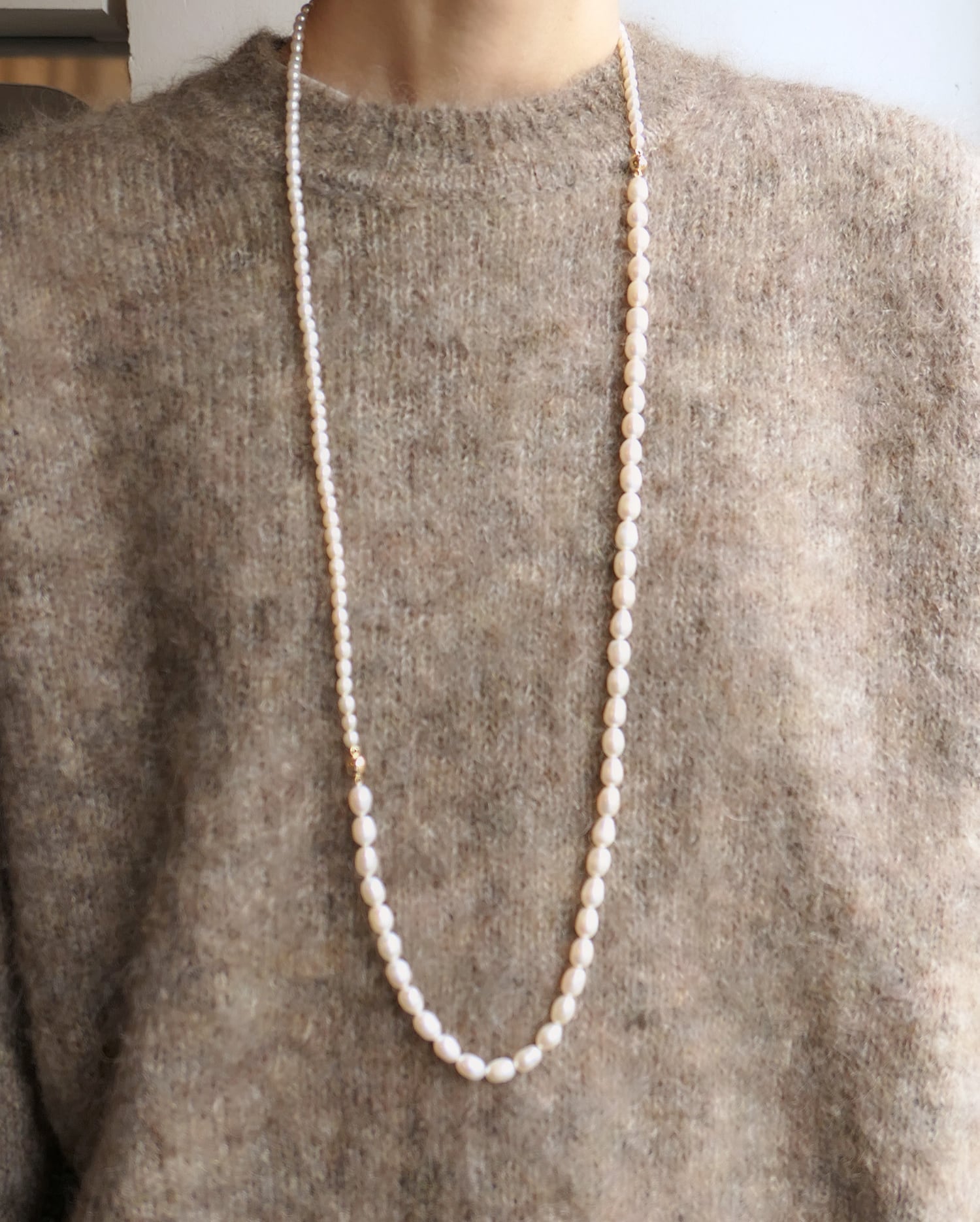 整いすぎない粒感が、首元にさりげない奥行きをつくります。