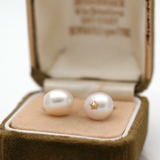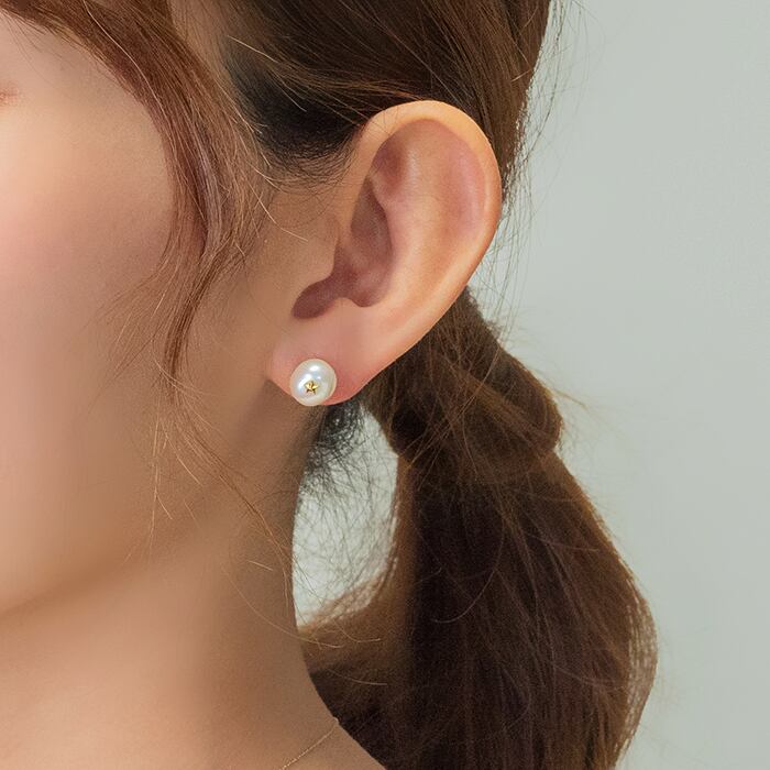 定番の1粒パールピアスをベースに、片側にだけ光る小さな小さな星。