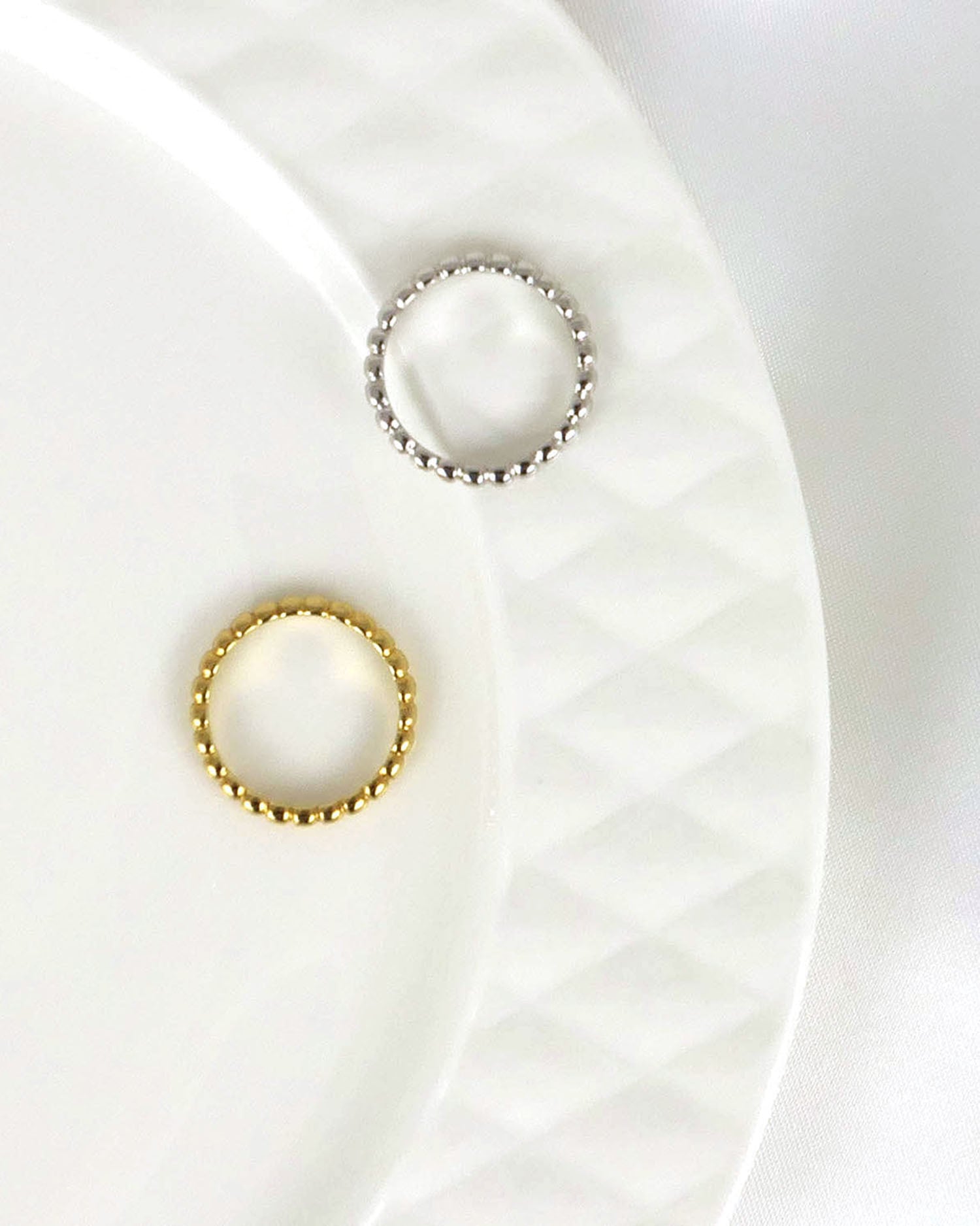 ゴールドもシルバーもそれぞれ違った雰囲気の存在感がかわいい、トライフルズのつぶつぶリング。
