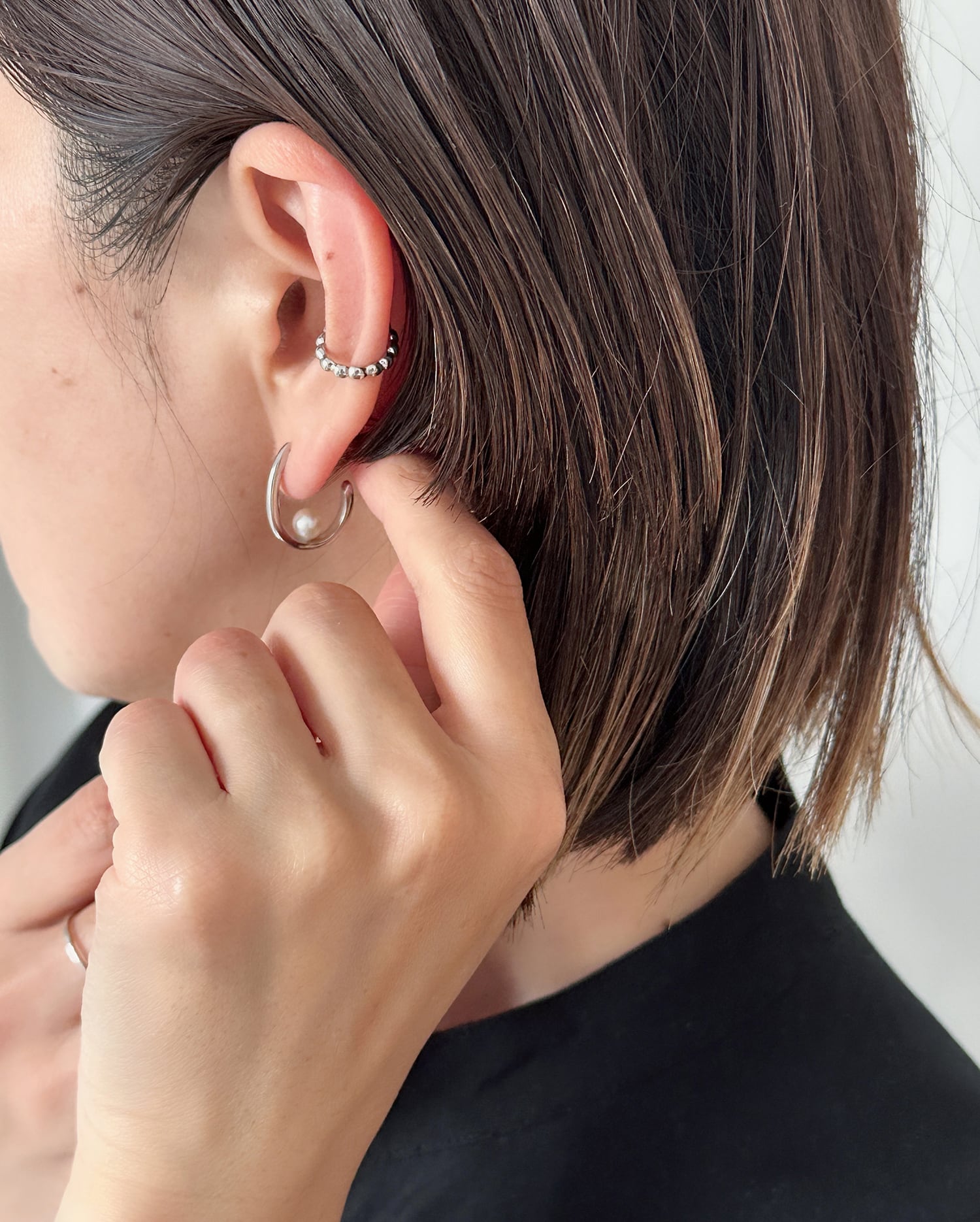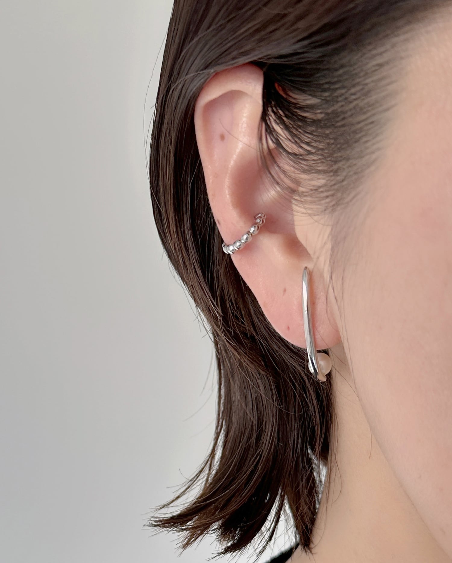 繊細なつぶつぶのフォルムが耳元にさりげない表情を添えるイヤーカフ。