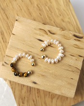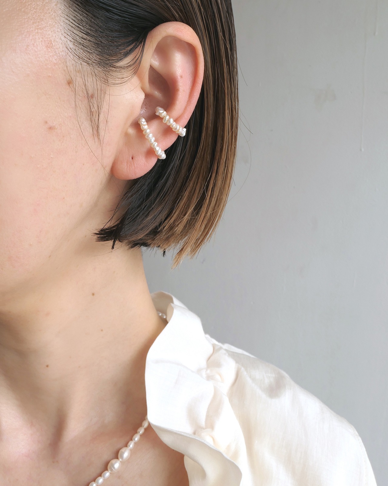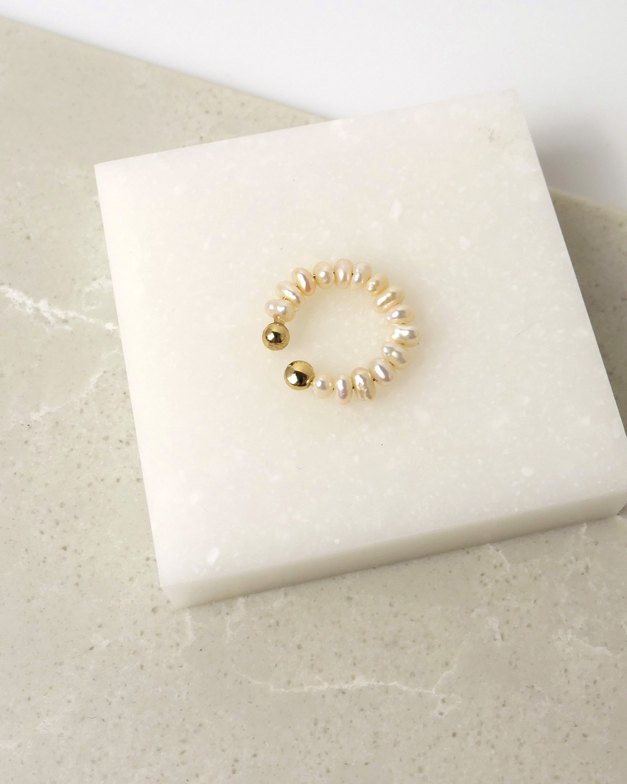 形状や大きさが1つ1つ異なるケシパールを使用しており、ユニークでカジュアルな印象が普段使いにぴったりです。