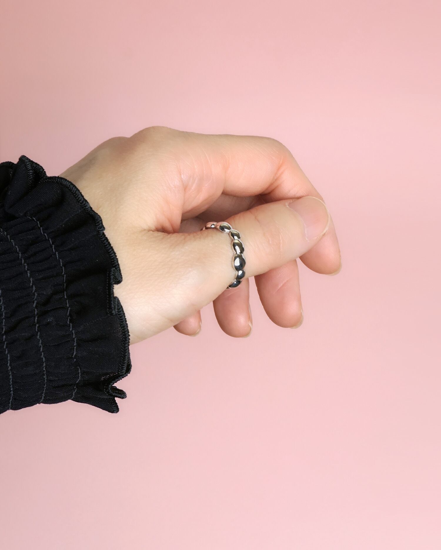シルバー925・つぶつぶウェーブ フリーサイズ リング〈ゴールド〉