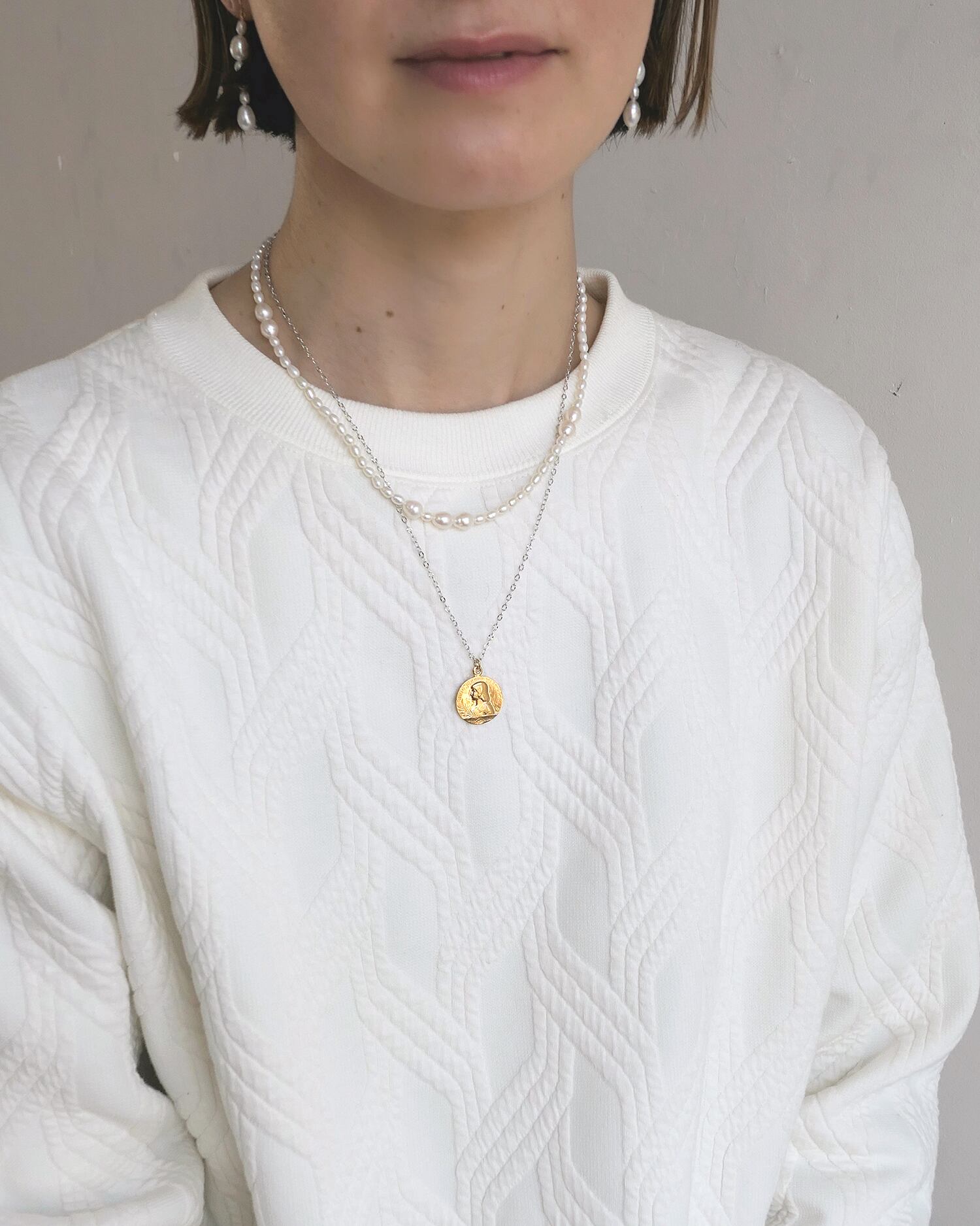 ベーシックな連パールネックレスをベースにしながら